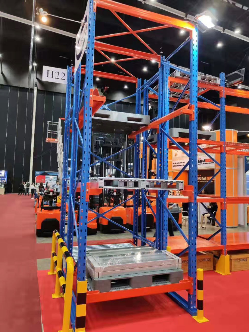 由公司外貿部同事參加2019年泰國曼谷國際物流展,參展展品有重型貨架、貨架平臺、穿梭式貨架、流利式貨架等。籌備工作已完成,今天展會正式開始,為期3天8.29-8.31。